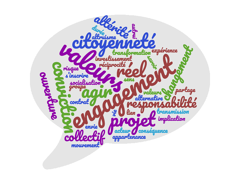 - Fonction d’engagement dans la participation : “articuler individuel et collectif”, “témoigner d’une diversité de vécu”, “rendre compte des différents points de vue, de différentes visions et représentations”,