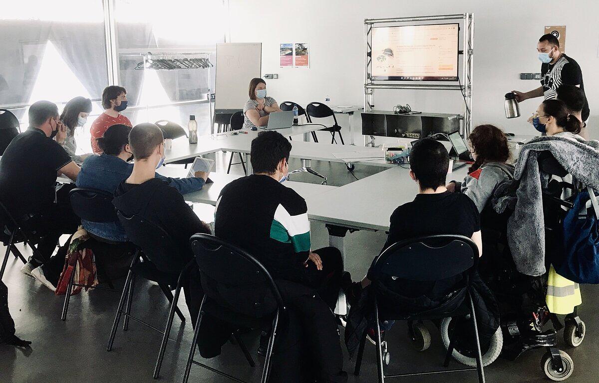 L’atelier s’est déroulé en mode LivingLab avec une participation active des jeunes de l’IEM présents et de leur accompagnatrice.