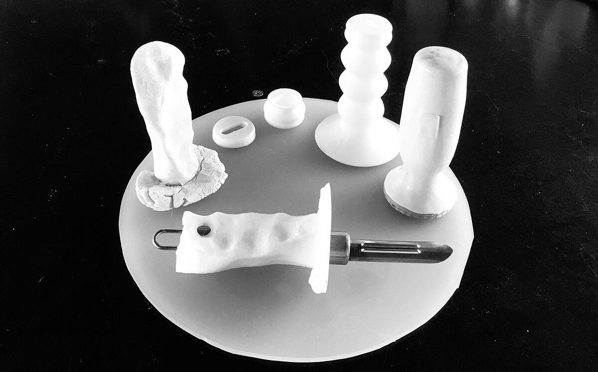 Au final, le prototypage a bien avancé, plusieurs prototypes de manches adaptés ont été réalisés, le Scan 3D de la pâte à sel fonctionne à merveille, la technique pour insérer une puce NFC dans du silicone fonctionne aussi, la puce reste accessible aussi bien pour la lecture que pour l’écriture, mais, après tests en cuisine avec les jeunes de l'IEM, le silicone s'avère trop glissant dès qu'un peu de jus de fruit (ou de légume) s'invite à sa surface.