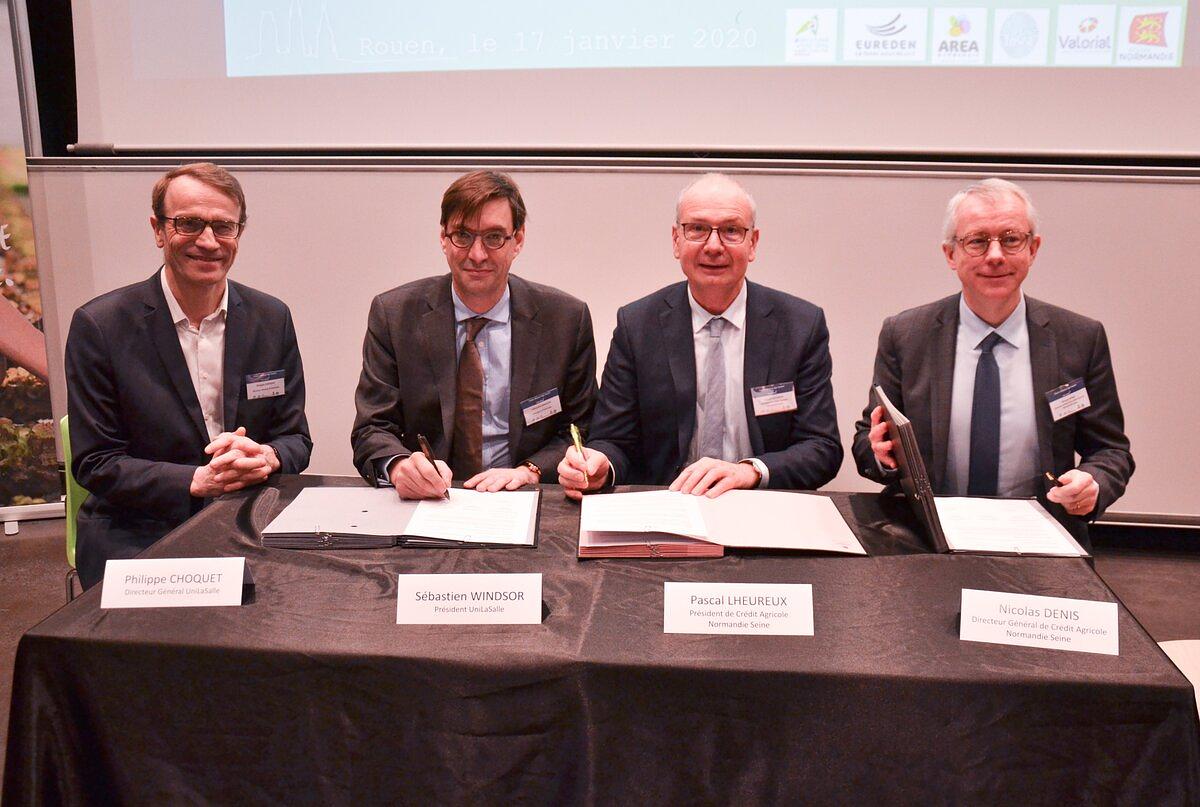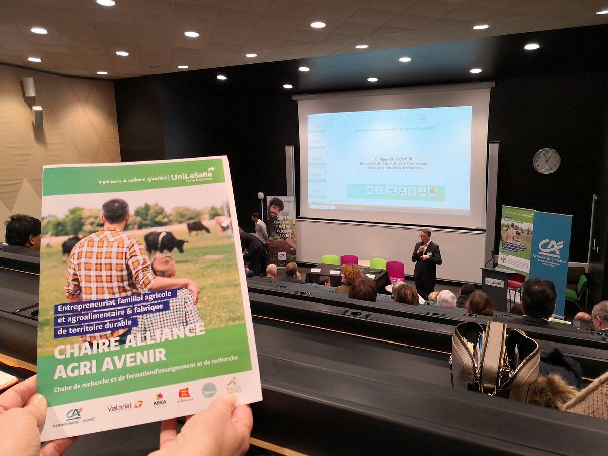 Afin d'accompagner l'entrepreunariat familial agricole et agroalimentaire, UniLaSalle, et ses partenaires publics et privés ont inauguré la Chaire de recherche et d'enseignement Alliance Agri Avenir sur le campus UniLaSalle de Rouen, vendredi 17 janvier 2020.
