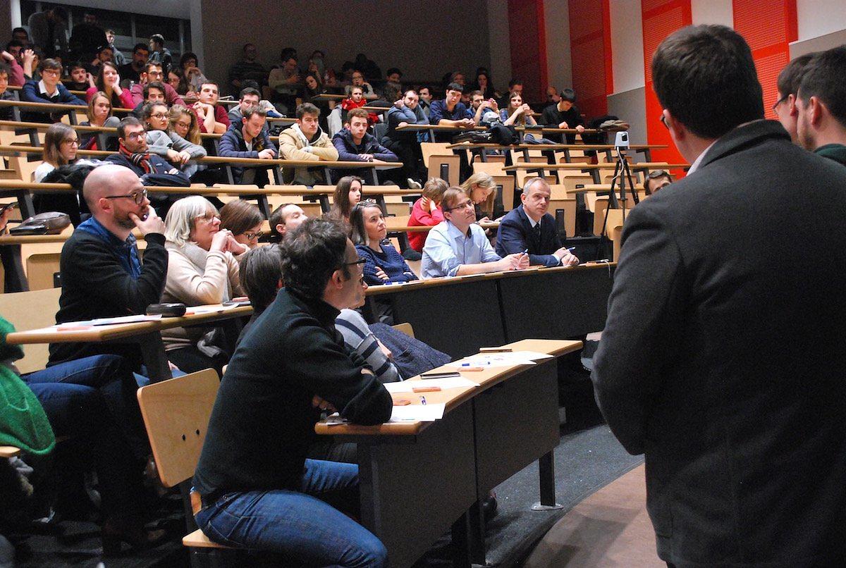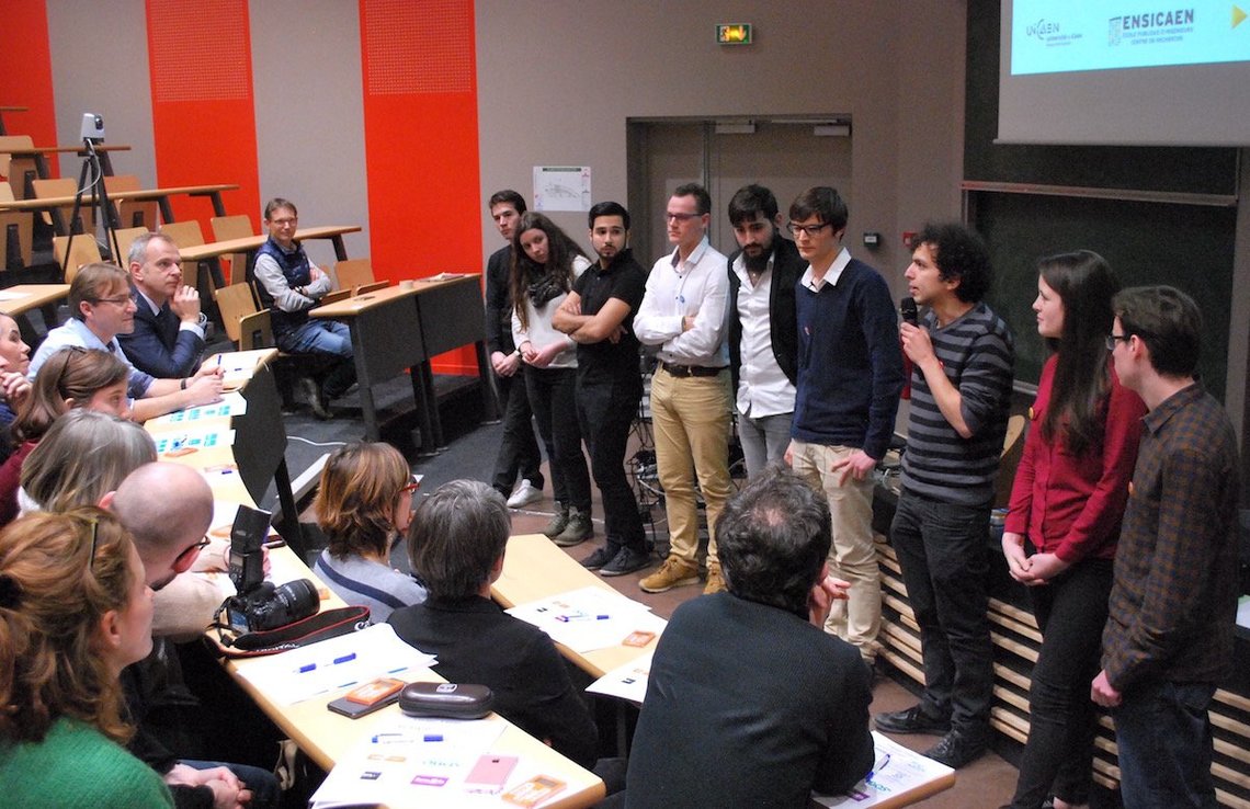 L’excitation était là lundi soir dans le grand amphithéâtre de l’ENSICAEN ! C’est devant un jury composé des membres des organisations partenaires (Normandie Aménagement, Caen la mer Habitat, Le Dôme) et d’organismes ou entreprises intéressées par des projets en lien avec l’innovation et l’aménagement urbain, que les étudiants ont présenté leurs prototypes développés autour de la problématique "Espaces collectifs et usages partagés ".