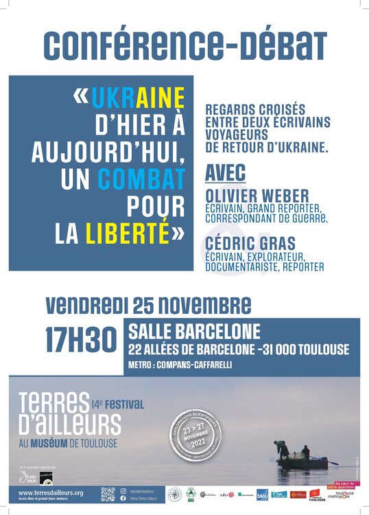 Dans le cadre de la 14e édition du festival Terres d'ailleurs, Olivier Weber, grand reporter et diplomate, et Cédric Gras, écrivain et fin connaisseur de la Russie, nous partageront leurs points de vue sur la question actuelle de la guerre en Ukraine.