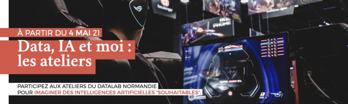 Après vous avoir proposé de débattre autour des données et des intelligences artificielles lors de deux conférences participatives, "SmartCity : Les nouveaux territoires de la data" et "Data et IA : le vrai, le faux, le flou", le DataLab Normandie et Le Dôme s'associent au réseau des Espaces publics numériques de la Région Normandie pour et vous invite à participer à une série d'ateliers thématiques pour imaginer des intelligences artificielles "souhaitables".