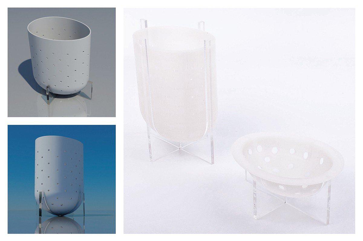 Il a ensuite fallu dessiner les modèles 3D des moules. J’ai d’abord voulu me former à l’usage des logiciels de CAO [Conception assistée par ordinateur, ndlr] mais j’y aurais passé trop de temps et l’essentiel de mon projet n’était pas là. Nouveau coup de chance. Au cours d’un déjeuner (revoilà la nourriture …), j’ai découvert que mon colocataire, Olivier Talouarn, était un amateur de dessin 3D. Il a accepté de m’aider et nous nous sommes lancés. Entre les contraintes de la machine, la forme très spécifique et les problématiques d’écoulement, les moules se sont révélés être des objets très techniques. Il y a eu beaucoup d’essais et d’erreurs mais nous y sommes parvenu.