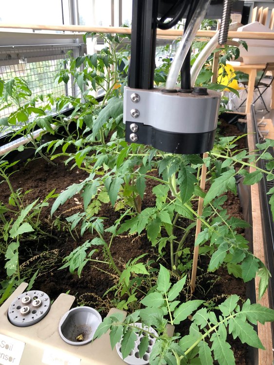 photo d’illustration : le FarmBot au Dôme et ses plants de tomates © Stéphane Dévé / Cran