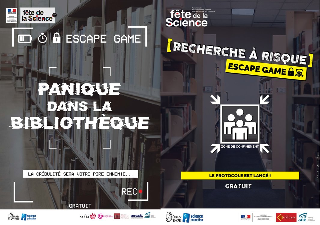 Dans le cadre du projet Sciences en médiathèque, Délires d’encre et Sciences Animation proposent de nouvelles sessions de formation aux Escape Games pédagogiques en visio-conférence : Recherche à risque et Panique dans la bibliothèque en grands groupes. Ces formations s’adressent aux professionnels des médiathèques, centres de documentation et autres acteurs de la culture afin de leur permettre de mieux s’approprier le contenu de ces Escape Games clés en main, de faciliter leur installation et de maîtriser la position de maître du jeu.