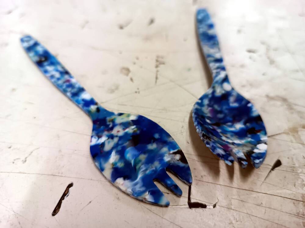 Notre animation autour du recyclage du plastique issu des imprimantes 3D a eu lieu 7 fois en avril ! Moult nouveaux projets ont ainsi rejoint la galerie, dont cette magnifique "cuitochette" (moulée après découpe, entre deux cuillères) et d'autres chouettes objets (un numéro de rue, un marque-page, une petite équerre, un stop-pub, une bague d'oreille, etc.).