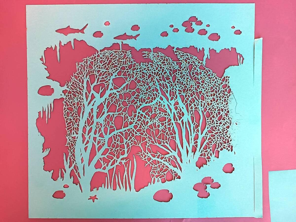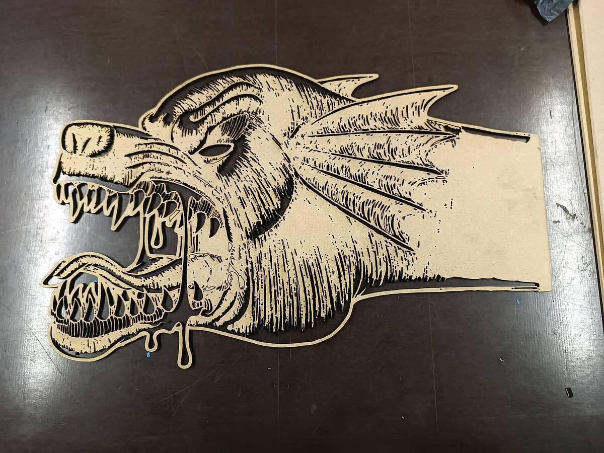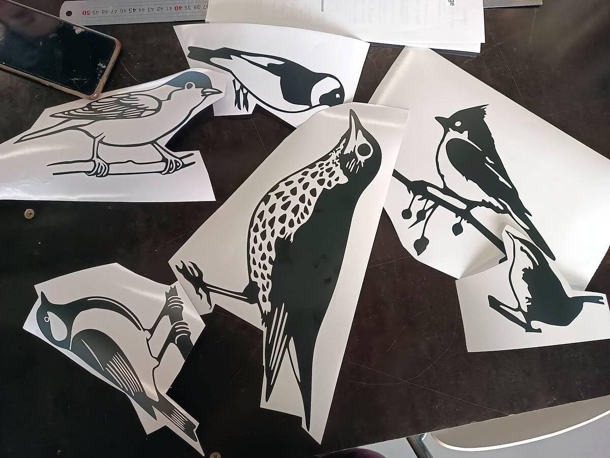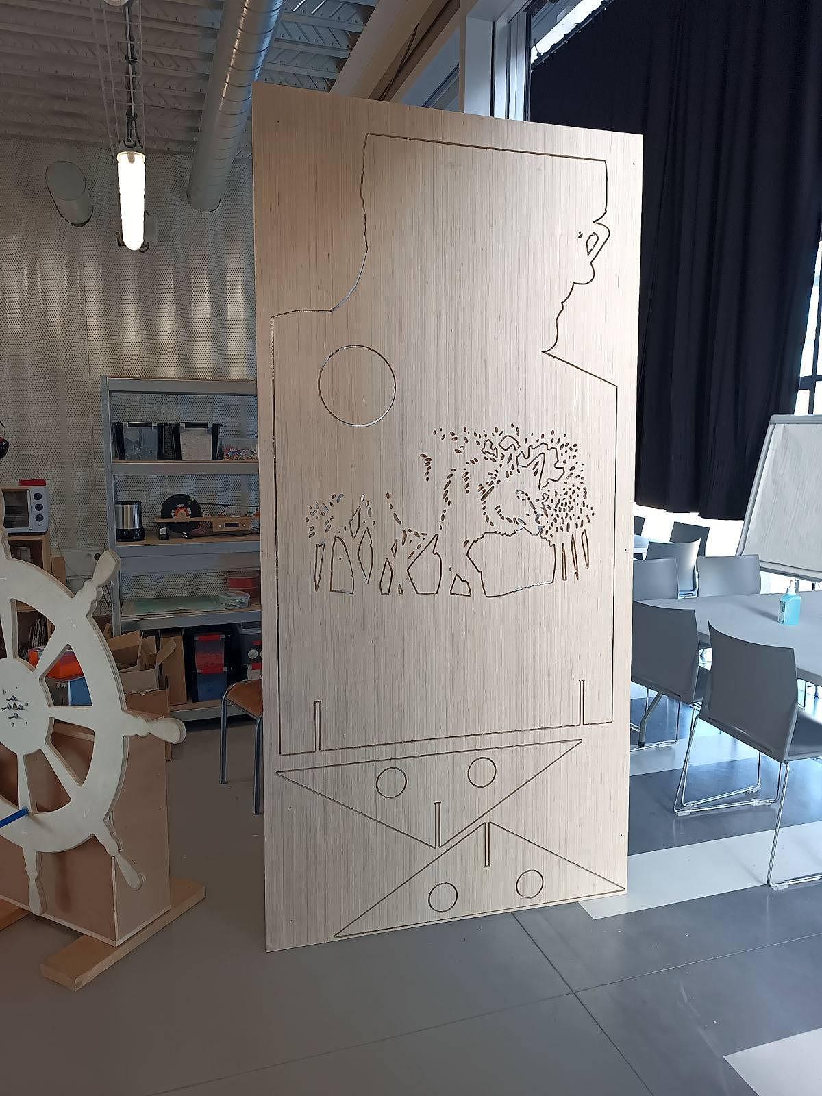 Suite et fin de la fabrication d'une partie de l'exposition consacré à l'auteur A. Guilloppé : papiers gravés au laser (ci-dessous), cartons découpés au laser, et ci-dessus panneau de bois usiné pour l'entrée de l'exposition. Avec la pratique les personnels de la mairie s'améliorent dans l'utilisation des outils, de quoi encore mieux anticiper les prochaines éditions, et le vaste potentiel des réalisations que permet la fabrication numérique.