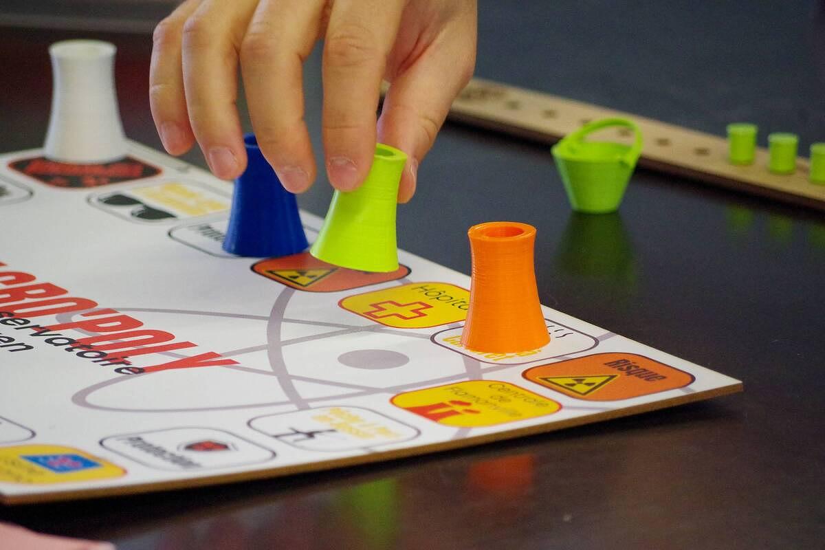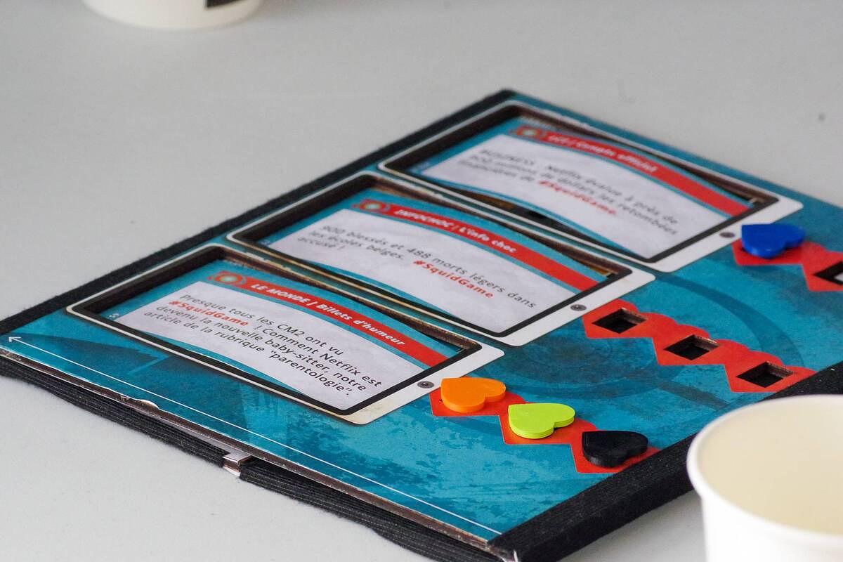 Une petite thématique que j'observe le long de l'année, pour laquelle je suggère régulièrement l'astuce du papier imprimé/marouflé. On peut ainsi s'approcher du rendu des jeux du commerce assez facilement, ou en tout cas avoir des prototypes plus aboutis qu'une simple planche gravée au laser (et plus lisible surtout). Exemple avec Accro'Poly ci-dessus, testé pendant le TURFU, ou Ocytocine ci-dessous.