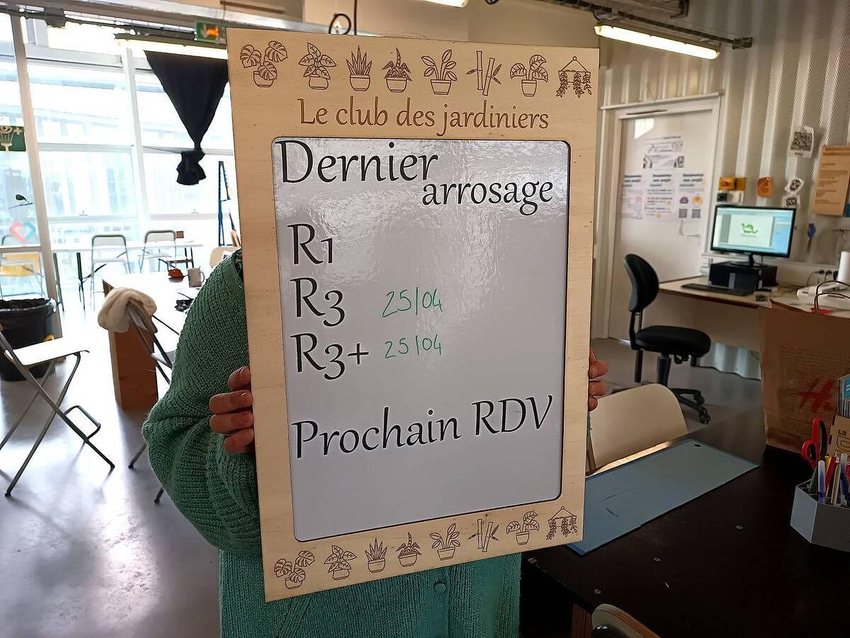 Un tableau pour organiser l'arrosage des plantes, de futurs trophées, une broderie sur chemise, un regroupement de personnes passionnées de claviers mécaniques, et toujours une grande quantité de formes en bois découpées au laser :)