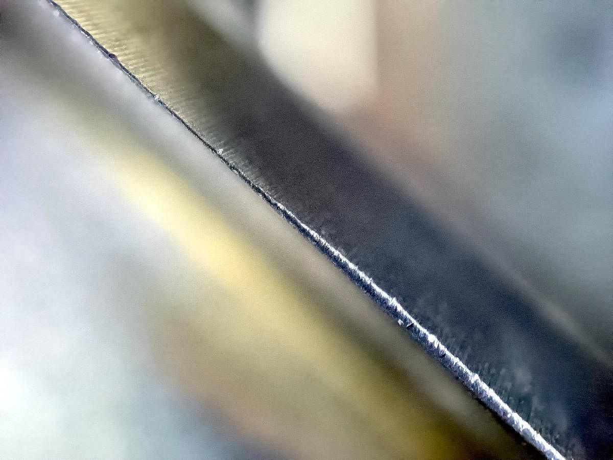 De bois, de grandes planches de plastiques recyclées, etc. Mais à défaut d'illustrer ces projets, voici une vue au microscope de l'usure de l'outil. La zone en bas à droite est le bout, assez émoussé, d'une fraise à deux lames droites.
