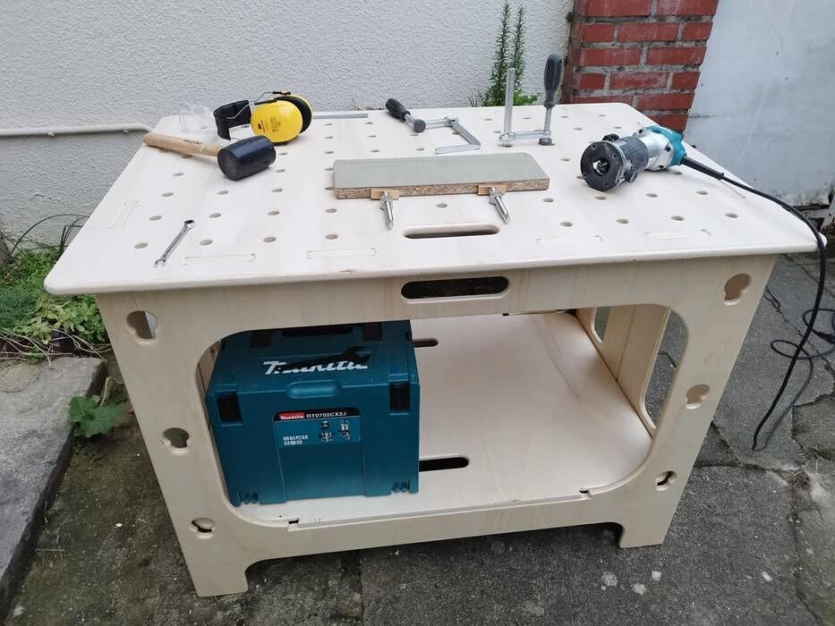 Un chouette projet documenté, pour un établi pliant en bois. Pratique et précis avec la grande fraiseuse.