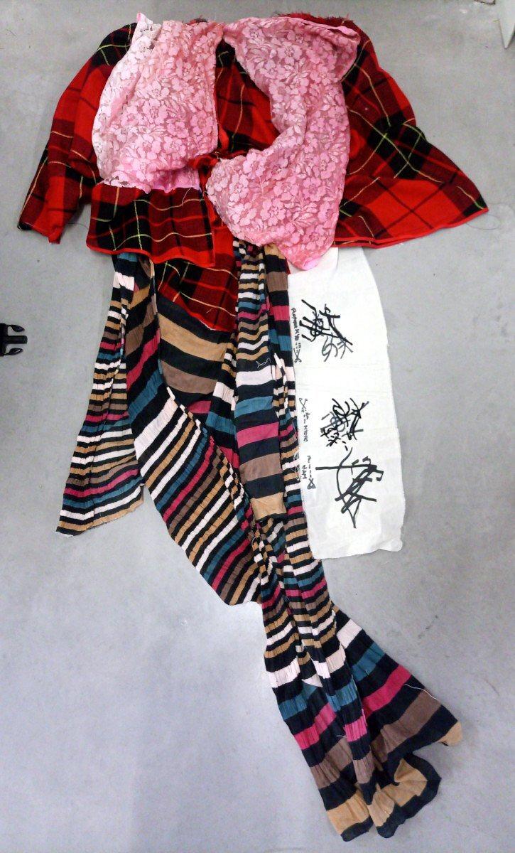 C'est une personne qui vient régulièrement depuis la ré-ouverture en septembre. Et avec notre aide certains de ses dessins (d'inspiration bouddhique) sont transformés en format numérique, puis réalisés sur textile, par flocage ou broderie. Dernièrement elle en a assemblé une partie dans un vêtement de sa fabrication (la machine à coudre reprend du service).
