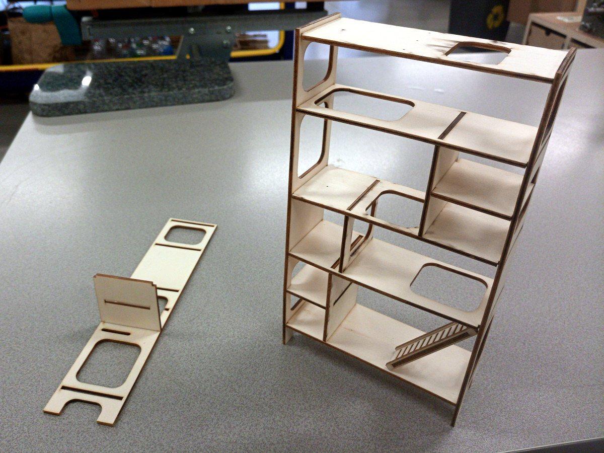 Le test a petite échelle aura permis de corriger une erreur dans le plan. Au final c'est une bibliothèque prévue pour accueillir des livres mais aussi un félin =^.^=