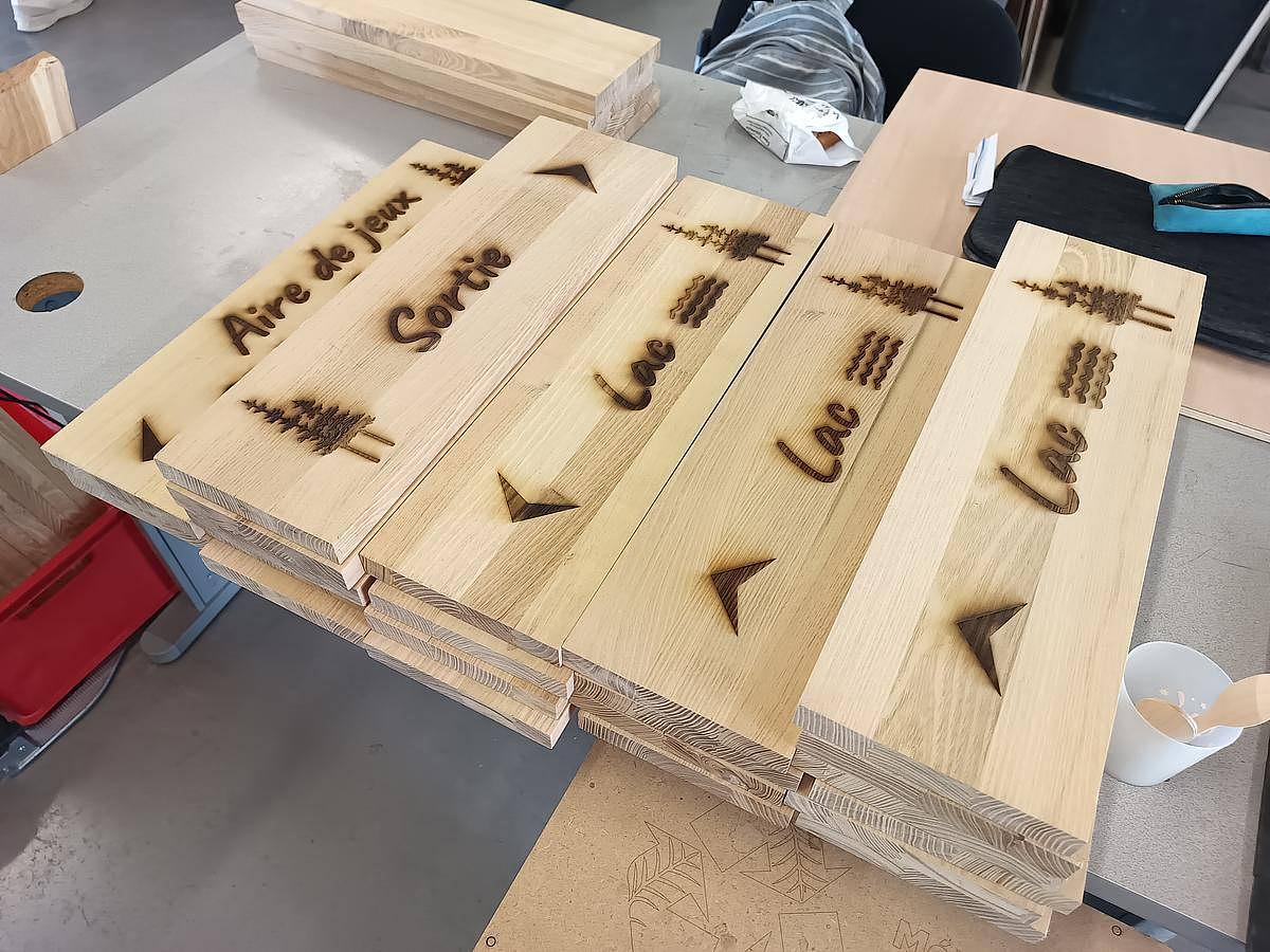 Sylvie revient graver une signalétique pour un camping