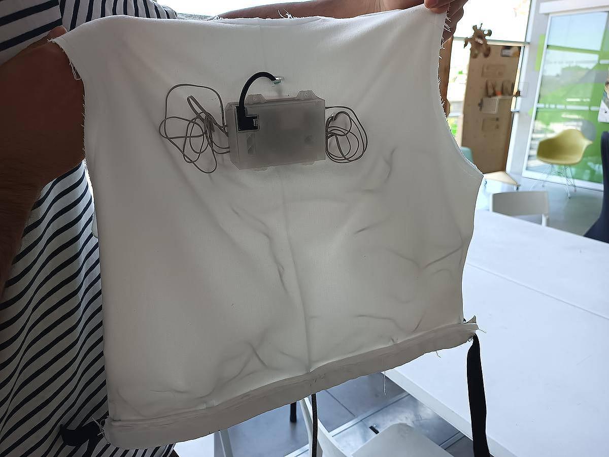 Il était déjà venu à titre personnel en début de saison, pour se faire une poignée d’épée d’escrime sur-mesure imprimée en 3D. Cette fois-ci il est en mission pour un laboratoire de l’université, ils développent une sorte de vêtement avec un boîtier (imprimé en 3D), un capteur de position et des vibreurs, ces derniers vont se faire sentir quand la personne s’éloigne de son itinéraire.
