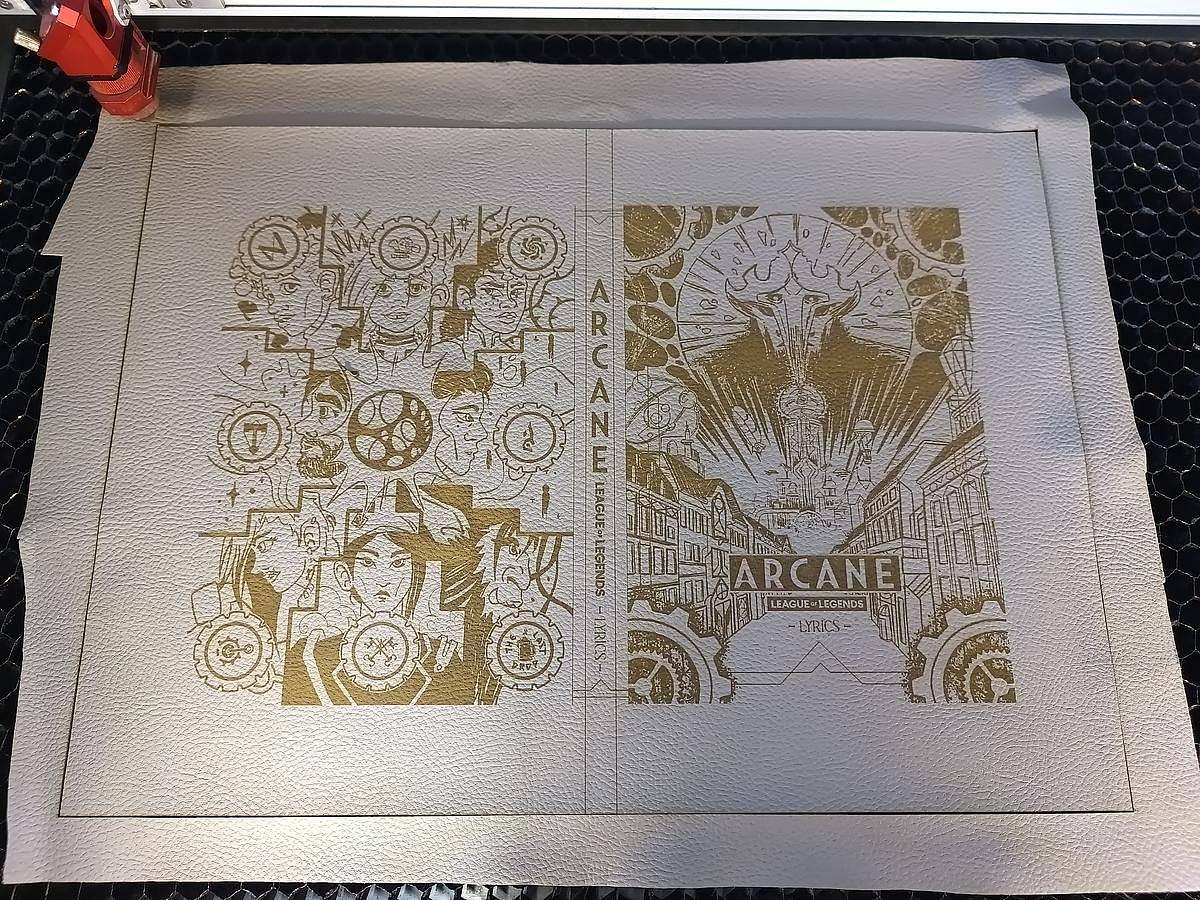 Et pour ça elle a choisie de graver au laser un cuir synthétique avec une illustration de sa composition.