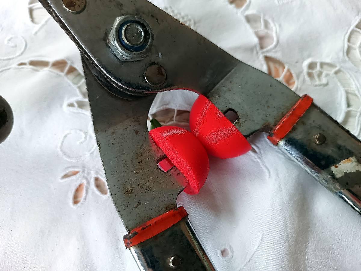 Ci-dessous, réparation d'un taille-haie auquel il manquait les petits amortisseurs du centre.