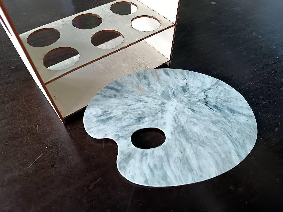 Une palette, comme cadeau de départ pour Célia, service civique chez nous, qui aime bien peindre.