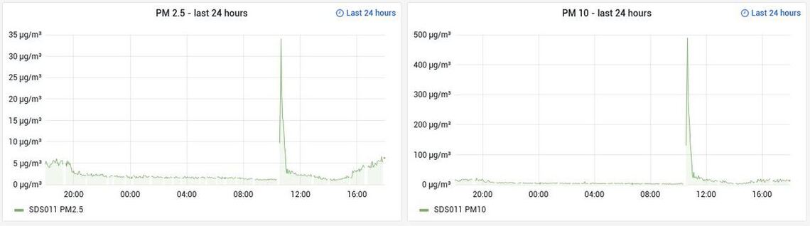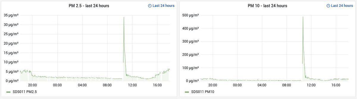 J'ai récemment remis en service deux capteurs de particules fines, du projet Allemand Luftdaten, avec un petit boitier qui va bien. Et, au fil du temps on a pu observer qu'il y avait parfois des pics assez importants, au-delà des limites que l'OMS suggère de ne pas dépasser (5µg/m3 pour les PM 2.5). Même si la durée d'exposition n'est pas aussi importante que dans une grande ville polluée, ça fait réfléchir. Après avoir observé différents cas de figures, ce ne sont pas les machines (laser, 3D) qui étaient en cause, mais un outil bien précis : la scie circulaire. La solution trouvée fut simplement de systématiquement brancher l'aspirateur (à la place du sac à poussière), pour capter les poussières en cours de découpe. Seconde source également étonnante : la presse chauffante. Là c'est l'aération qui va aider (éventuellement la placer près d'une fenêtre quand elle est utilisée une après-midi entière.
