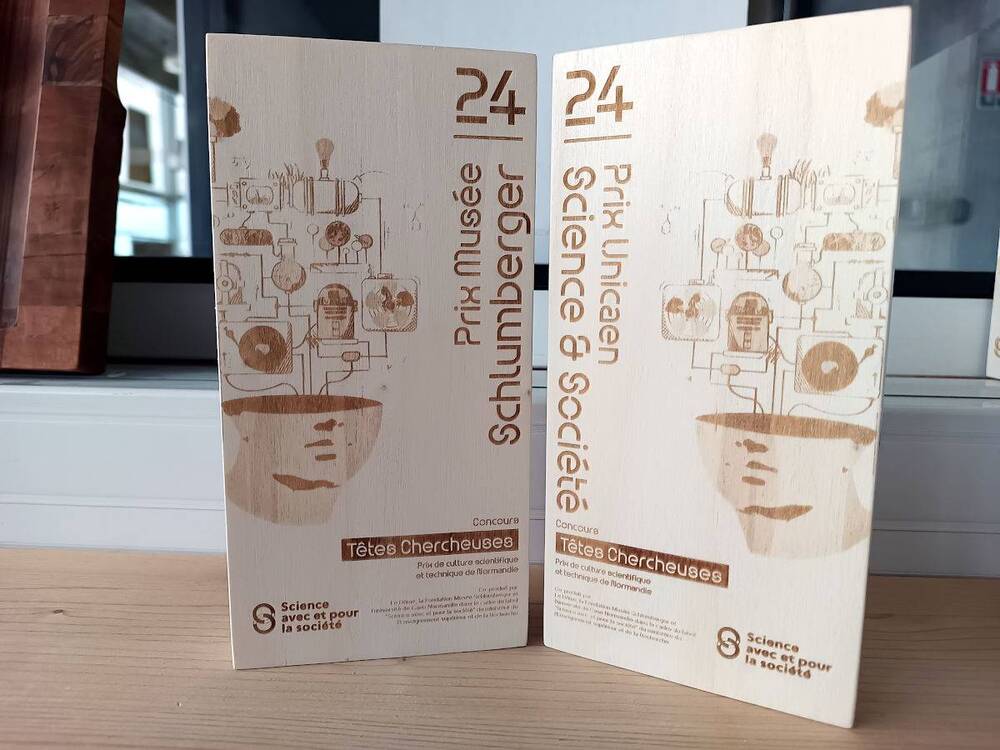 Ce doit être une période propice aux remises de prix, car ce mois-ci on a vu passer une dizaine de réalisations de ce type (plus que d'habitude en tout cas). Ci-dessus nos propres trophées pour l'édition 2024 du concours Têtes Chercheuses.