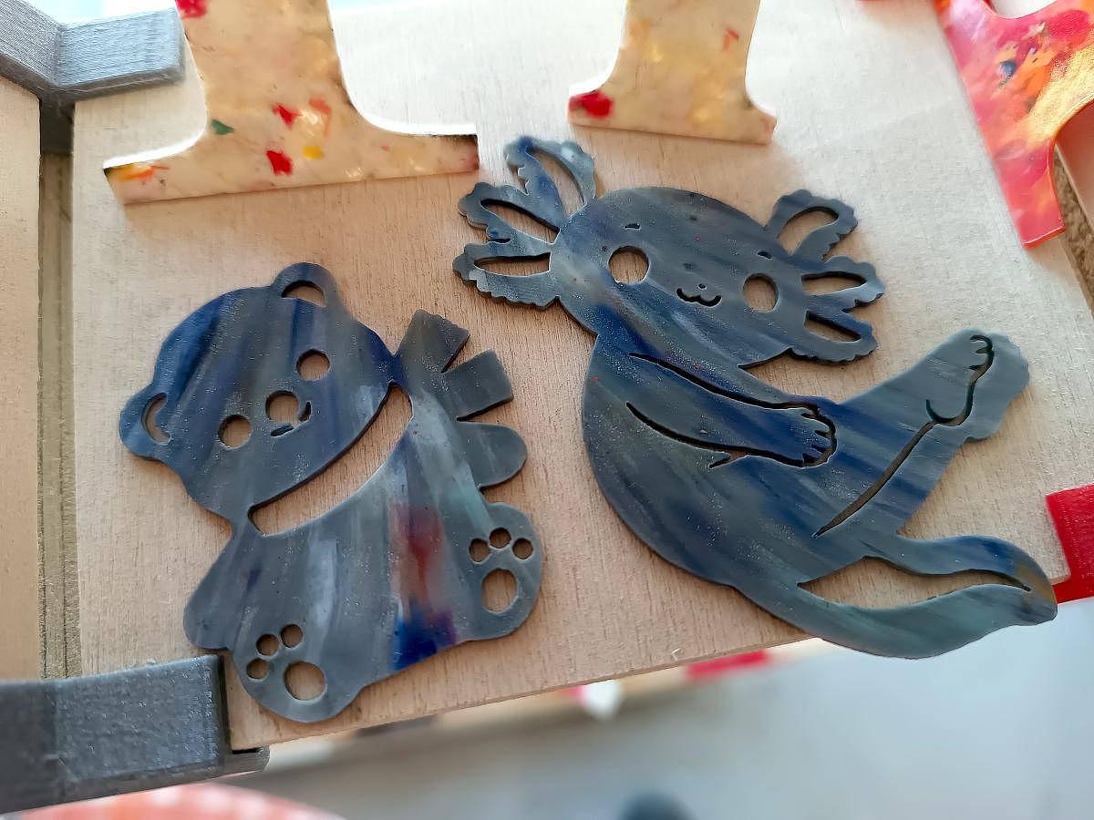 On a pu initier deux grands groupes de personnes en séjour ERASMUS (venus de divers pays d'Europe), petit prétexte de fabrication qu'ils ont pu intégrer à leur projet créatif du moment et toujours une occasion pour aborder les enjeux des plastique et le mirage du recyclage (réduire la production, arrêter l'usage unique partout où c'est possible, etc).