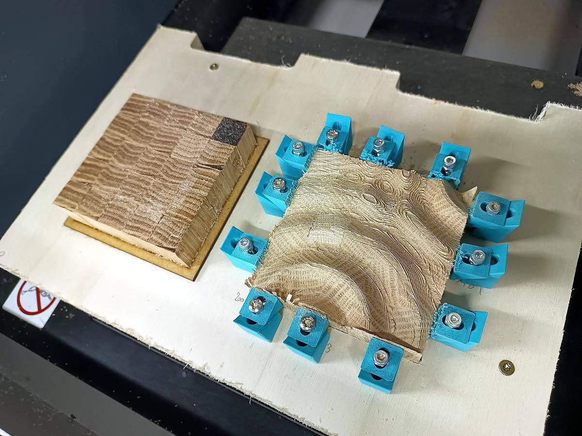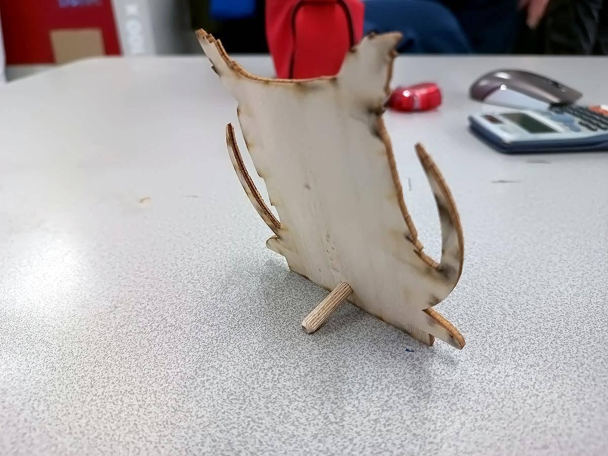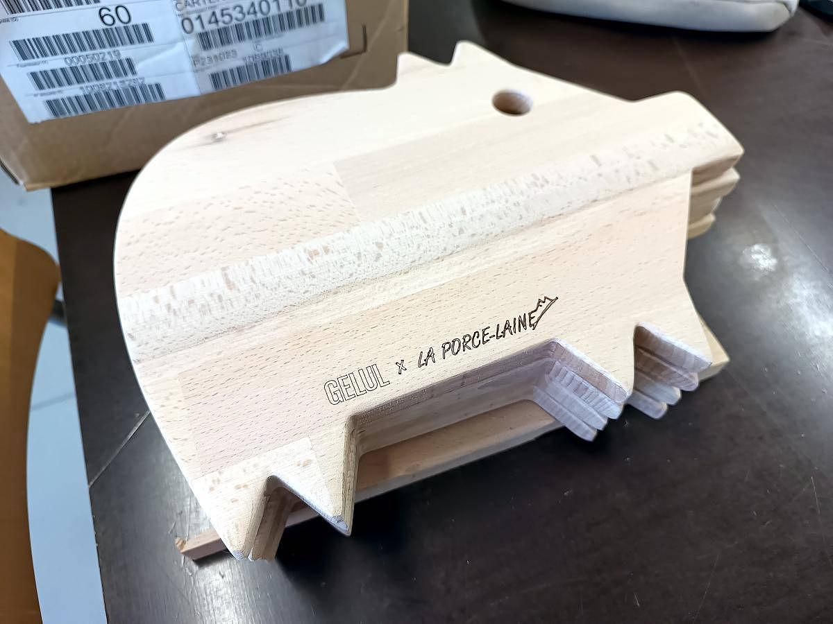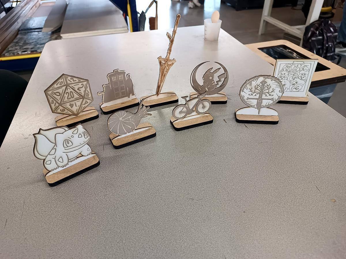 Fidèle de la grande fraiseuse il revient découper plein de petites formes. Il se diversifie également grâce à la formation laser afin de marquer ces planches en collaboration avec une boutique du centre.