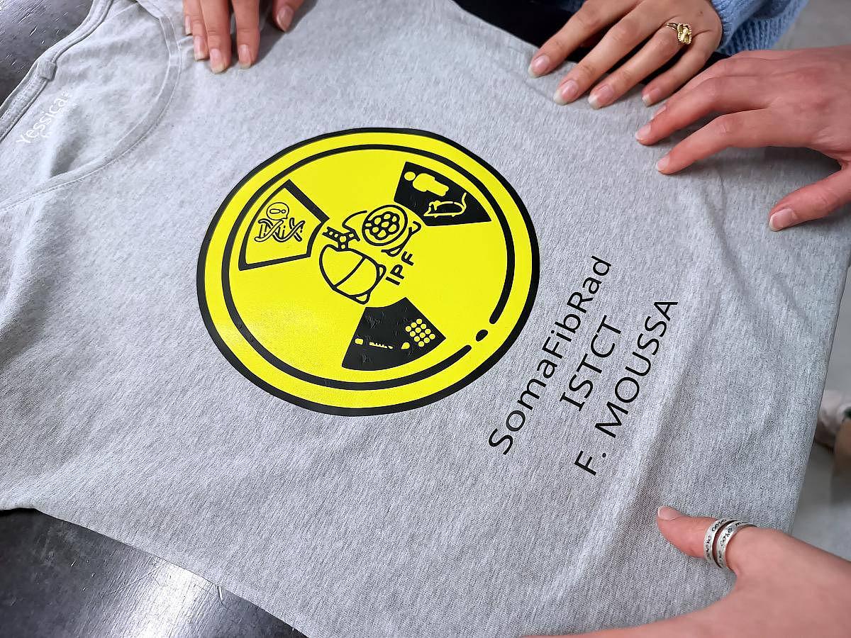 Une grosse demi-journée permet de commencer par la prise en main du logiciel libre Inkscape et d'aller jusqu'à la réalisation de leur objet (juste symbolique pour les masters, ci-dessus, et évoquant leur sujet de recherche pour les doctorant·es, ci-dessous).