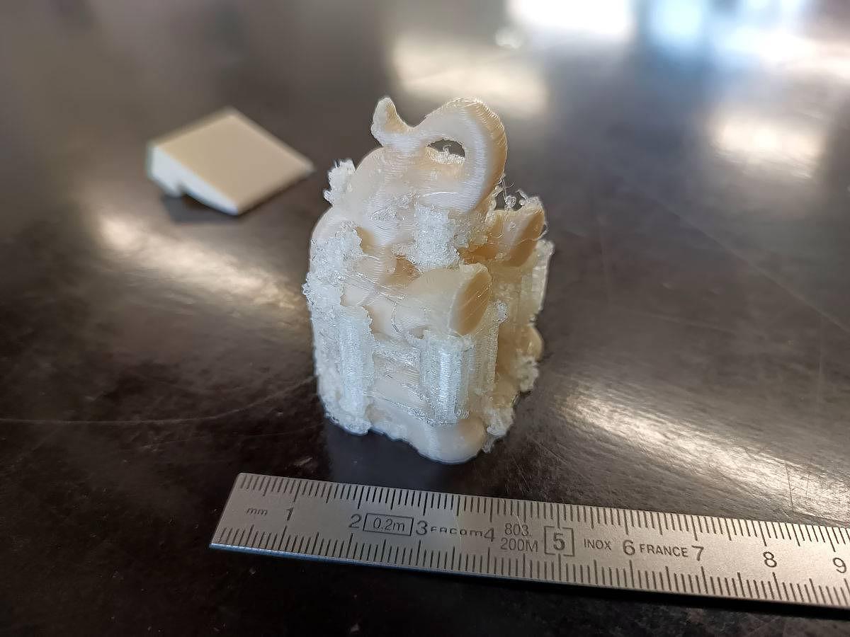 Autrement le PHA peut s'imprimer avec ou sans supports, en PHA ou même en PVA soluble pour les géométries les plus complexes, tel cette figurine d'éléphant pour un jeu de plateau (Siam).