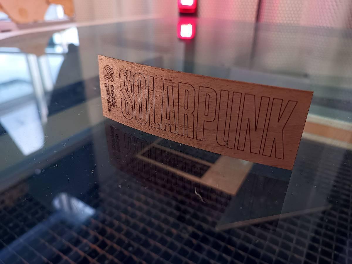 Il s'agit d'une fine planche de bois massif (pour du placage au départ j'imagine), marquée et découpée pour servir de marque-page dans le recueil de nouvelles Solarpunk édité par Copie Gauche et financé de manière participative (un exemplaire est consultable au FabLab).