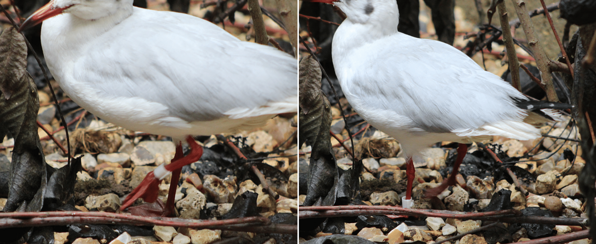 Cette Mouette rieuse, accueillie au CHENE en 2022, possédait déjà deux bagues au moment de sa prise en charge : 1 bague du muséum de la Pologne et 1 bague issue d’un autre programme de suivi.