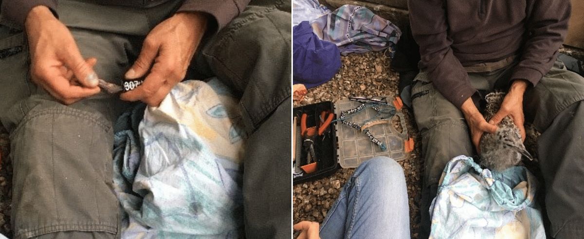 La bague que ces oiseaux portent en volière est retirée au moment du relâcher. À quelques rares exceptions, les pensionnaires ne sont pas relâchés bagués.