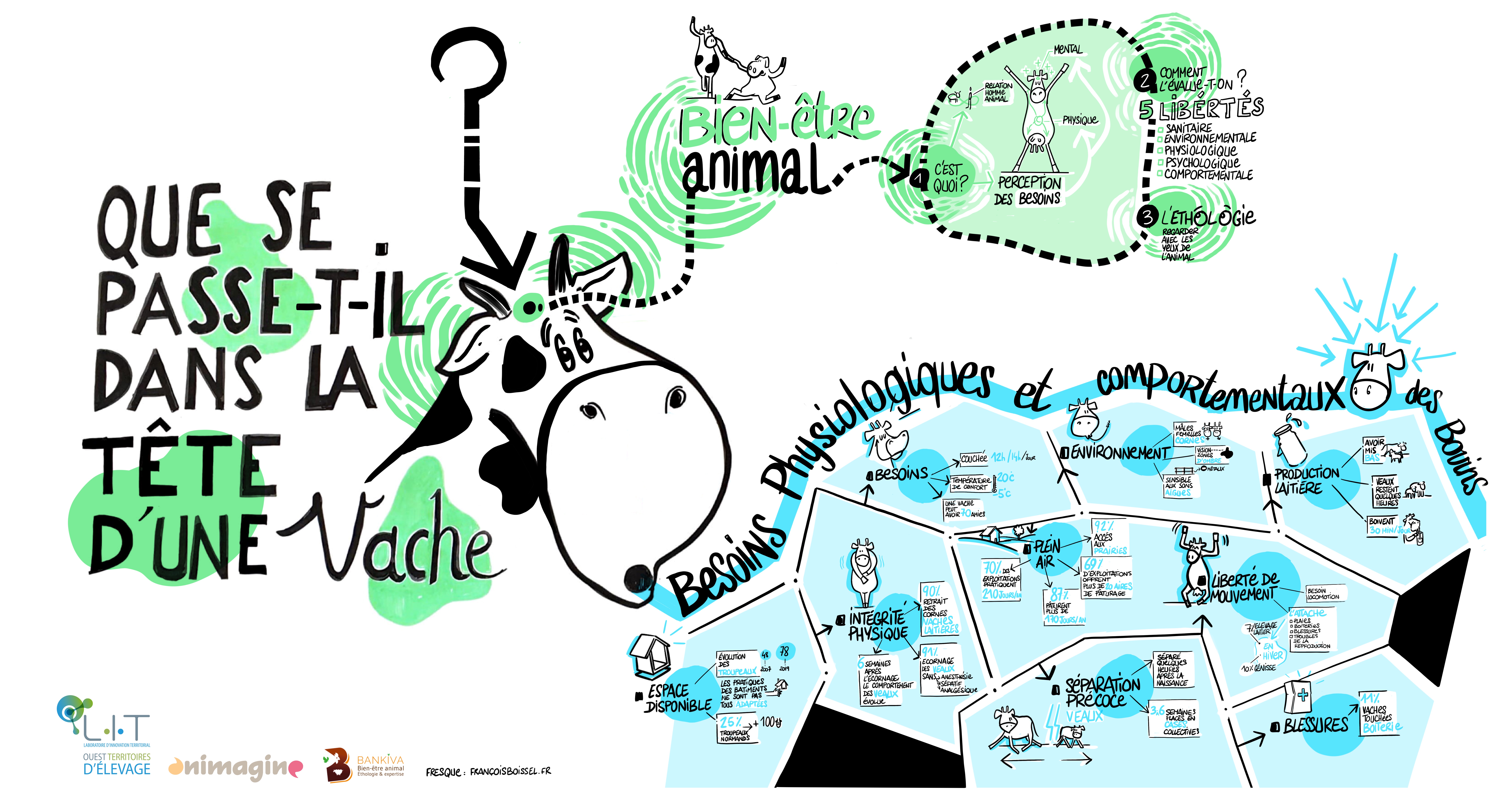 Le samedi 19 mars 2022, l’association du LIT OUESTEREL animait en partenariat avec le Dôme et le bureau Bankiva un atelier ouvert au grand public à Caen (14). Sept personnes ont répondu présent à cet évènement. L’objectif de cet atelier ? Sensibiliser les personnes intéressées par les conditions d'élevage, de transport et d'abattage ; aux besoins physiologiques et comportementaux des vaches laitières, mais aussi récolter des éléments d’une vision sociétale de l’élevage.