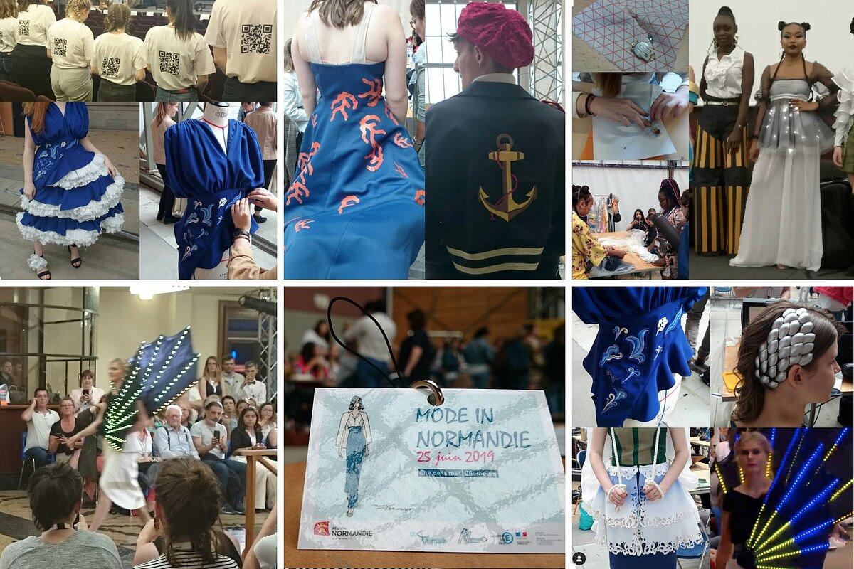 Ainsi, les élèves du lycée professionnel Alexis de Tocqueville de Cherbourg-en-Cotentin (Manche, 50) ont été accompagnés par les animateurs de l'Espace Public Numérique local, à l'aide de la découpe vinyle, de l'imprimante 3D, et de la brodeuse numérique, ils ont imaginé une robe bleu agrémentée d'éléments imprimés en 3D et brodés. Ils ont aussi mis en avant leur esprit d'appartenance à une équipe en floquant des T-shirt avec des flash codes renvoyant sur des liens parlant de leur établissement et de l'événement. Des vêtements qu'ils ont porté fièrement pendant les préparatifs du défilé !