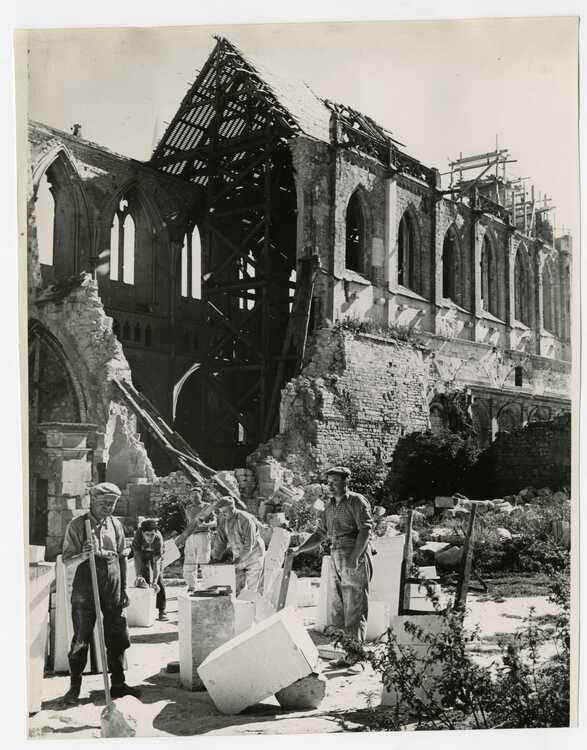Image : Archives du Calvados, Saint-Germain-la-Blanche-Herbe : reconstruction de l'abbaye d'Ardenne, 1948, 2FI/573
