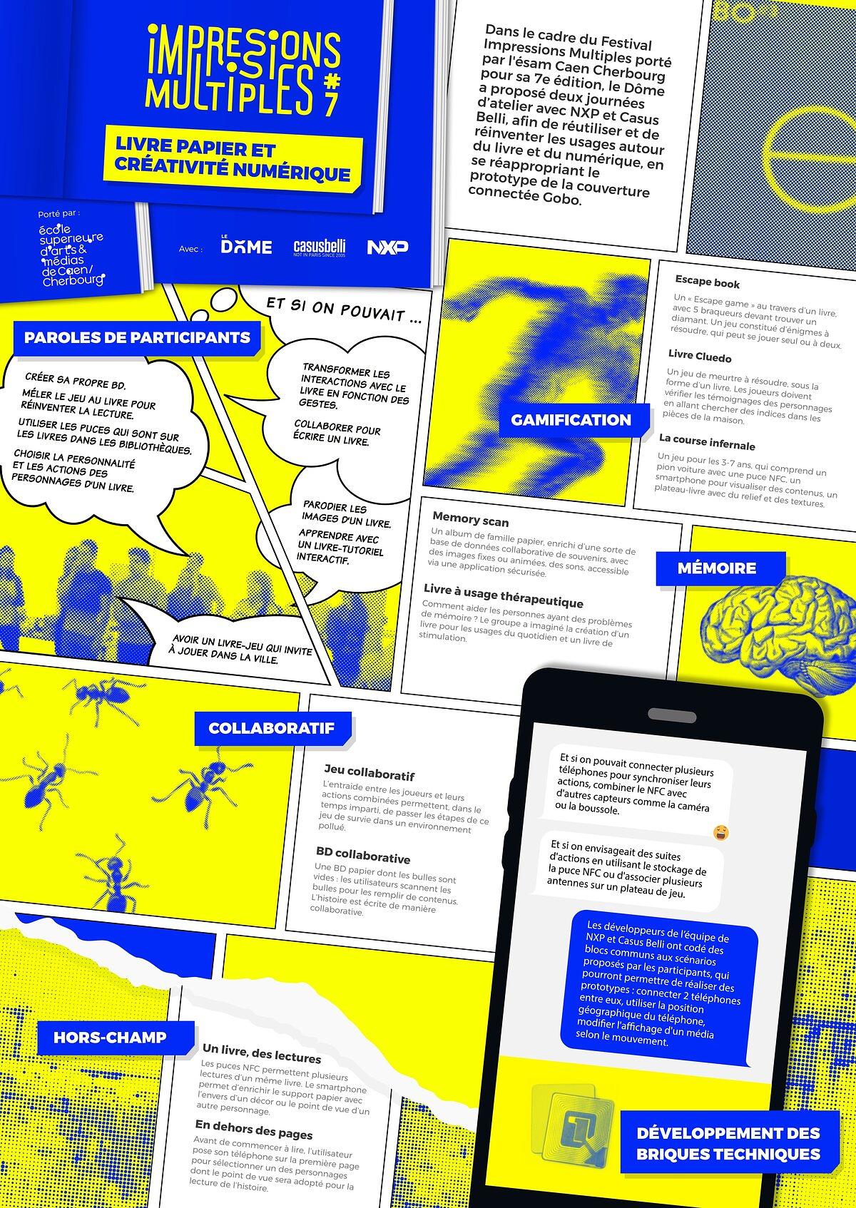 Pour la troisième année consécutive, Le Dôme s’associe au festival Impressions multiples porté par la mention “Editions” de l'École supérieure des arts et médias Caen-Cherbourg (ESAM) pour deux jours d’ateliers sur le thème du livre et des interactions numériques. Pour cette nouvelle édition, l'agence Casus belli et NXP étaient également présents pour évoquer nouvelles interactions et nouvelles technologies avec les participants.