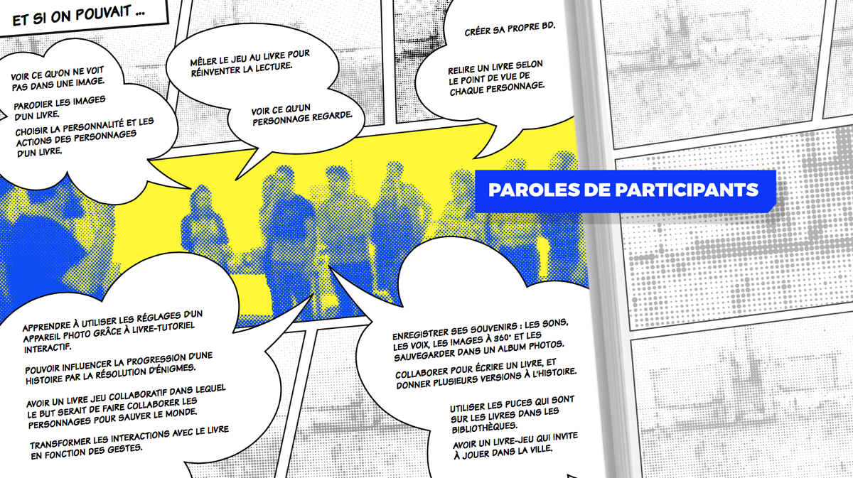 Le temps d’une journée, ils sont une trentaine à être venus imaginer et prototyper des livres et papiers enrichis ou détournés au moyen d’outils numériques. Papier sonore, livre jeu, carnet de croquis interactif, installation papier numérique et poétique… les pistes étaient nombreuses et nourries par les projets de NXP et de la couverture connectées développée avec Casus belli.