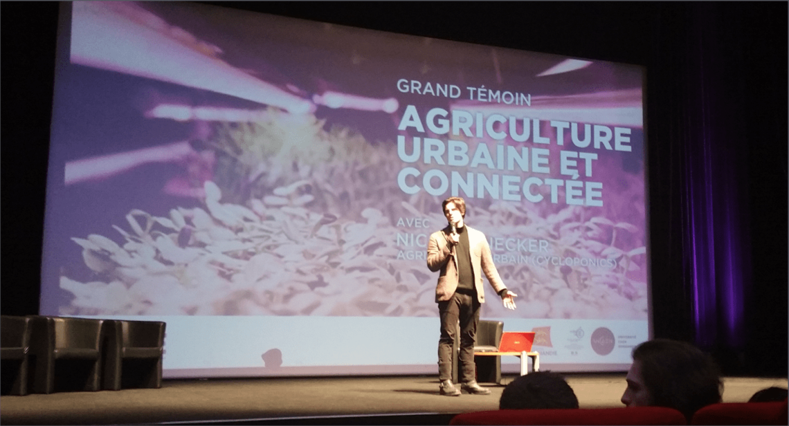 Après les membres et fondateurs de DataPaulette en 2016 et Grégory Bonnet en 2017, c’est Nicolas Necker, Chargé de développement de la jeune entreprise Cycloponics et spécialiste de l’agriculture urbaine, qui était l’invité de cette 7ème édition édition qui s’est déroulée le 22 février 2018 à l’Université de Caen Normandie devant un public de plus de 500 lycéens, étudiants et individuels.