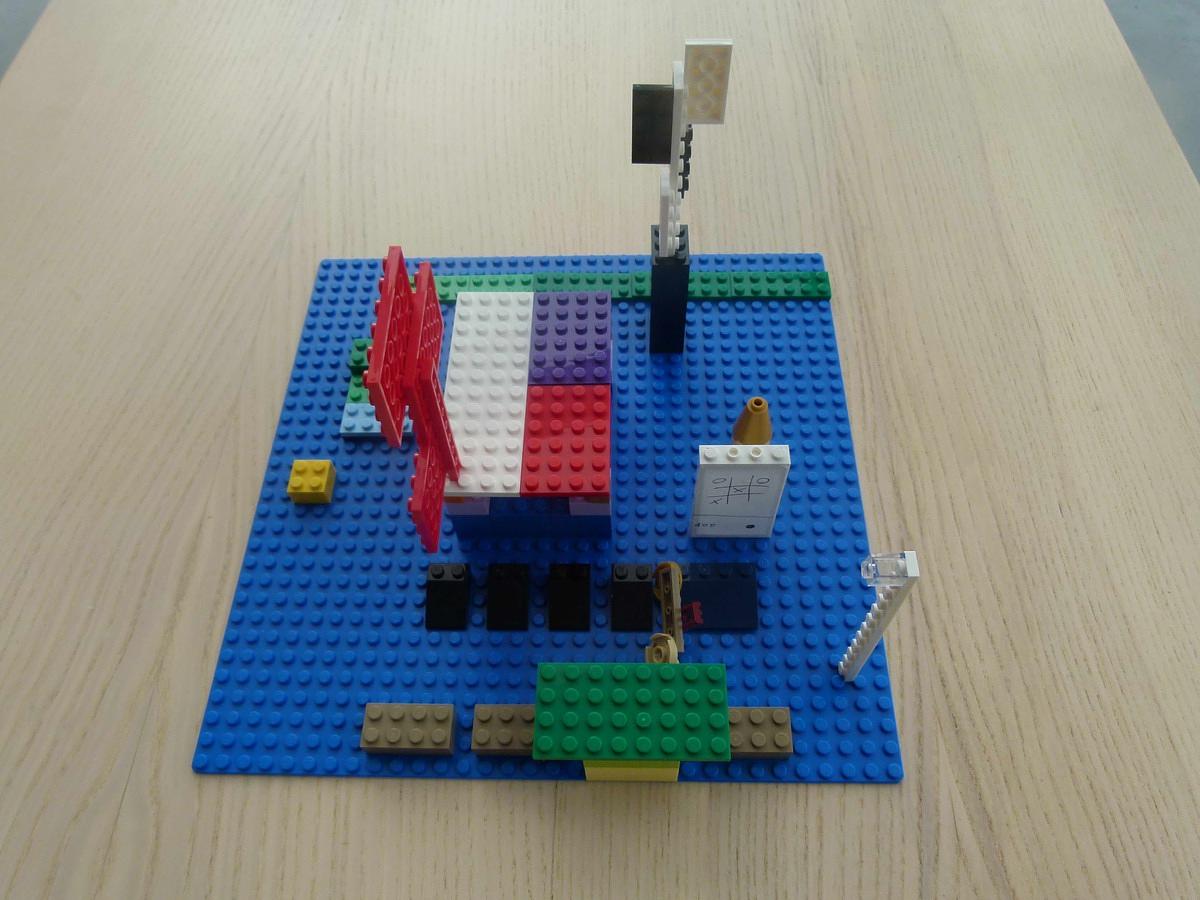 Sur la borne autonome, le groupe a, dans un premier temps, modélisé une maquette en Lego®. Cela a permis aux participants de définir ce qu’ils voulaient voir apparaître dans la maquette et comment disposer les éléments en fonction des usages autour de la borne. Il reste maintenant à réaliser les plans afin de lancer la production de la maquette.