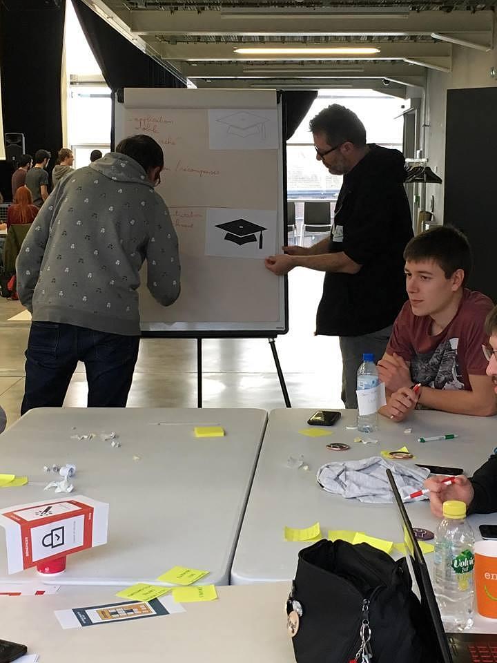 Au cours de la matinée, les équipes ont suivi des étapes fondamentales pour la réussite de cette semaine. Avec l'icebreaker, les participants ont appris à mieux se connaître ; pour la créativité, le brainstorming et le super 8 ont fait émerger les idées. A l'aide de ces méthodes, soutenues par les mentors, chaque équipe a dégagé une problématique et des questions de fond.