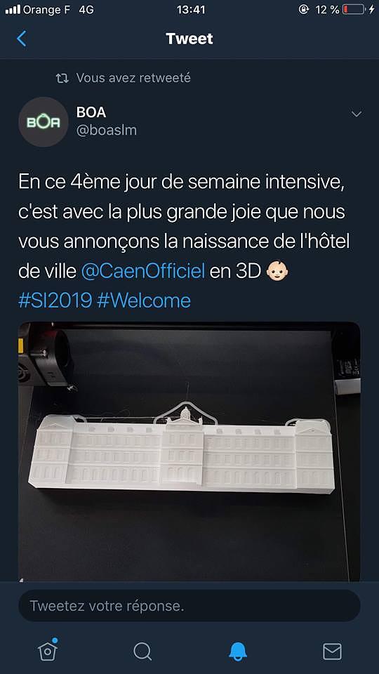 - Des maquettes de bâtiments prennent forme comme celle de la mairie de Caen : 2 heures de modélisation, 20 heures d’impression et 1 heure 30 d’ajustement (équipe "BOA")