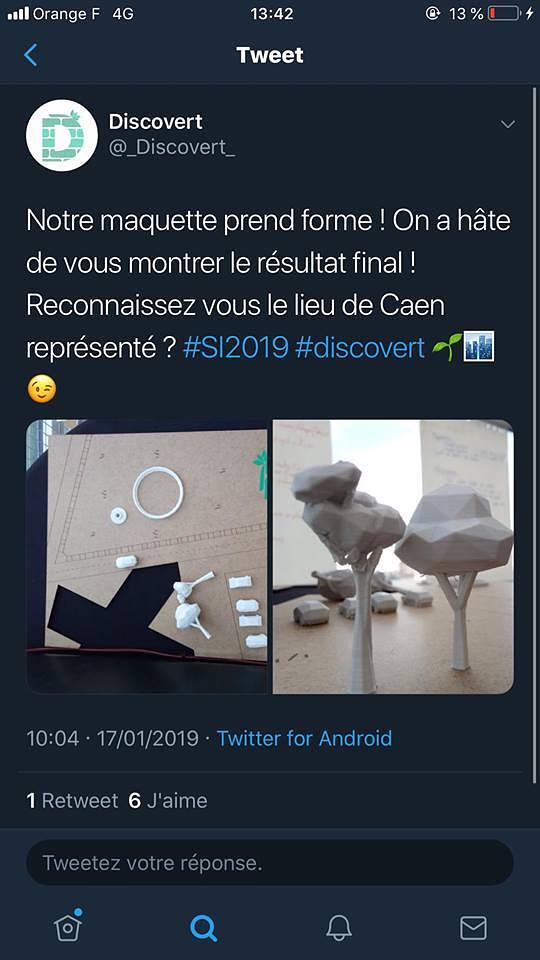 - Des puces NFC (near feald communication = communication en champs proche) cachée dans une impression 3D. Elle dévoile des informations lorsque le smartphone s’en approche (équipe "Caen'taisie")