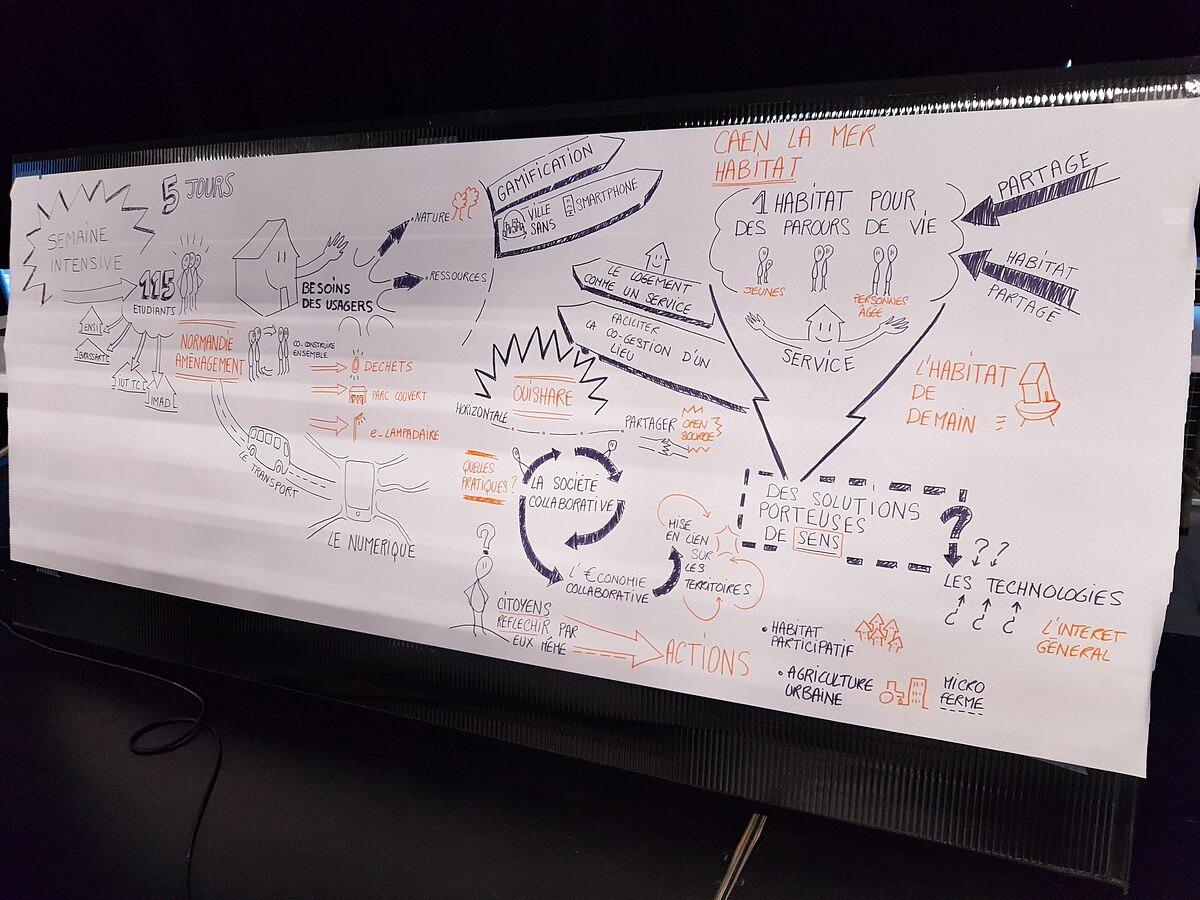 Ce lundi 15 janvier 2018 marquait le début de la semaine intensive au Dôme de Caen. Notre équipe se compose de sept étudiants de l’ENSICAEN (École Nationale Supérieure d'Ingénieurs de Caen), trois étudiants de l'École Brassart et deux étudiants de l’IMAD de Caen(Institut des Métiers de l'Architecture et du Design) . La première journée a été consacrée à la découverte du sujet et à la recherche d’idées. Nous avons pu exposer notre vision aux représentants de Caen La Mer l’Habitat qui étaient satisfaits des choix effectués.