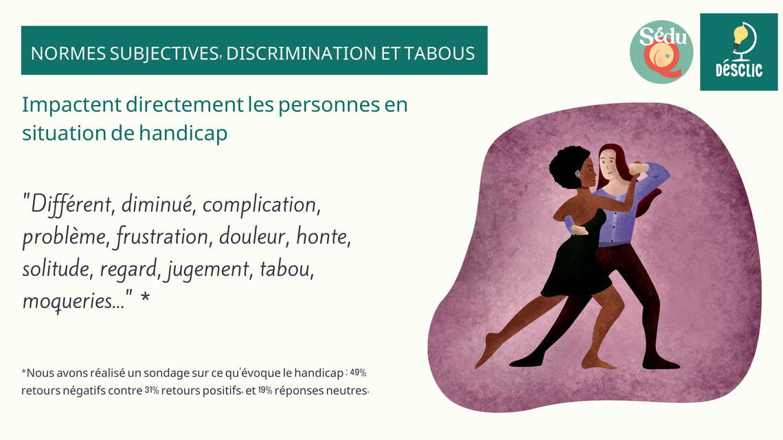 Afin de co-créer le meilleur outil et jeu de société pour promouvoir une santé sexuelle inclusive💡 Et en attendant la conférence participative du 14 avril, organisée par Le Dôme et les Éditions Désclic, voici des retours que nous avons recueilli sur les sexualités lorsqu’on a un handicap.