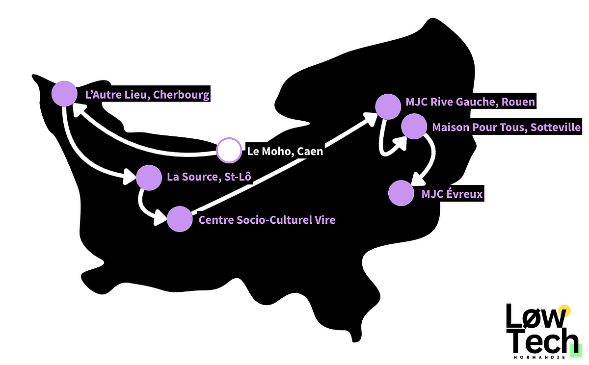 Le réseau Low-Tech Normandie animé par le Dôme pilote l'itinérance de l'exposition en région. Après 2 mois au Moho jusqu'à la fin de l'année 2025, des arrêts prévus dans les villes suivantes :