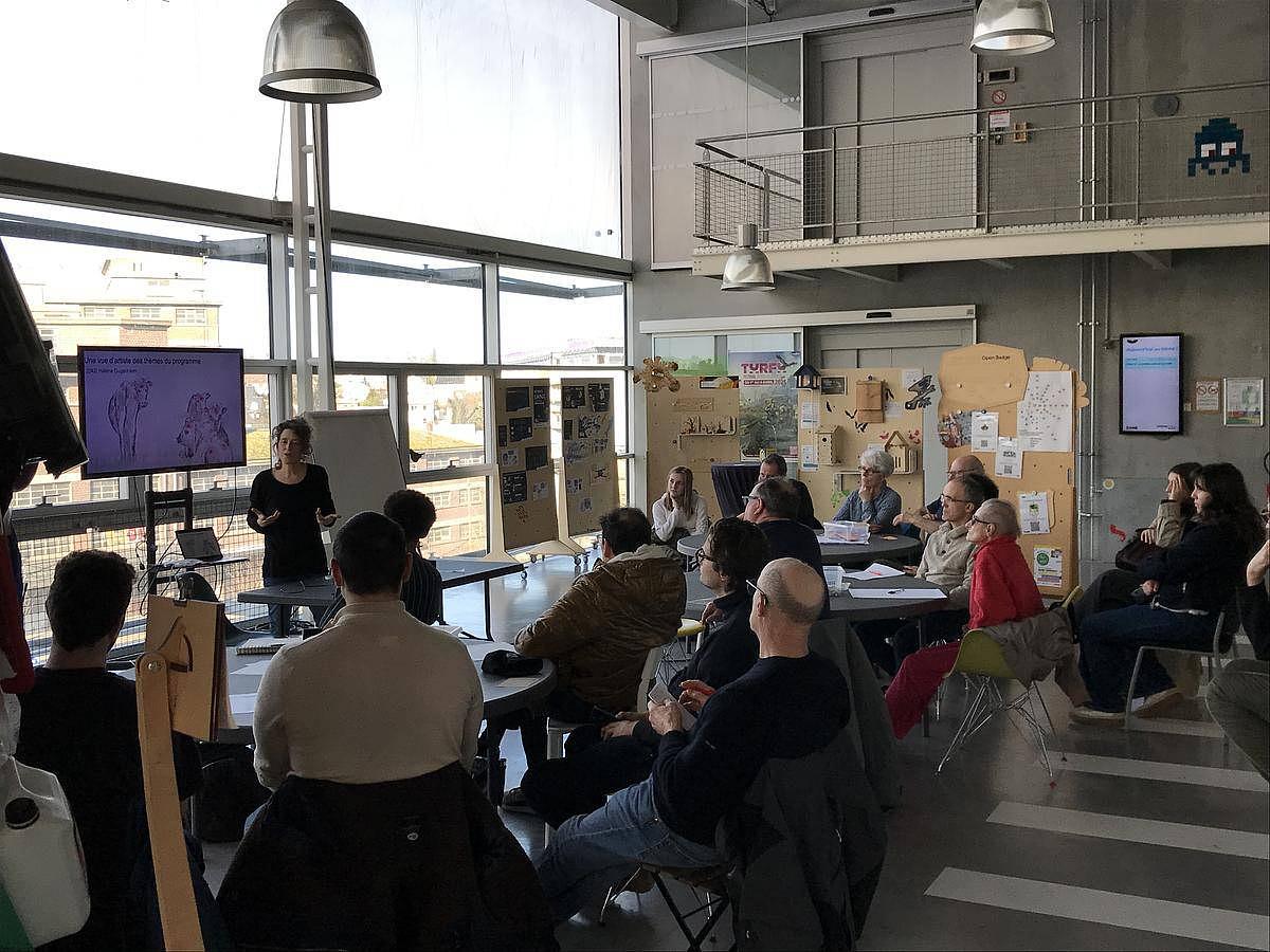 Hélène Gugenheim, une artiste plasticienne en résidence à l'ABTE sur le programme Des générations plastiques nous a fait le plaisir d'introduire l'atelier en nous livrant une analyse artistique et poétique des productions du programme provenant à la fois de ses échanges avec les scientifiques de l'ABTE, de sa participation à des évènements DGP, de son propre travail de recherche et de multiples autres rencontres.