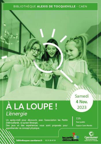 Cette année, dans le cadre de notre cycle "à la loupe", venez explorer l'énergie à la Bibliothèque Alexis de Tocqueville de Caen. Des jeux, des ressources et des expériences vous sont proposés par les bibliothécaires, associés pour l'occasion aux Petits Débrouillards de Caen ! Un programme complet pour appréhender le concept et découvrir l'énergie sous toutes ses formes : cinétique, thermique, potentielle, etc.