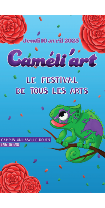 Envie de découvrir de nouveaux artistes, des styles artistiques que vous ne connaissez pas et ce que les étudiants de la ville de Rouen font dans leur école/université, tout en profitant d'une ambiance festive et conviviale ? Caméli'Art est fait pour vous ! Au programme, 7 représentations artistiques et un village associatif, alors, n'hésitez plus !
