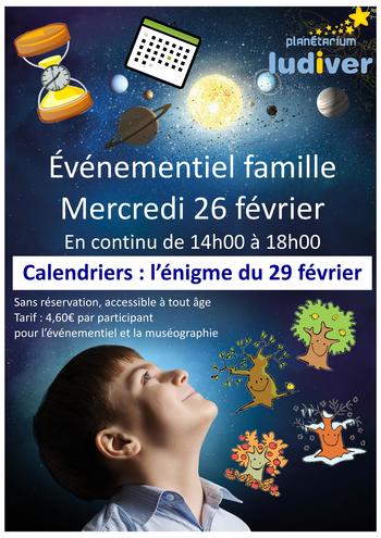En continu de 14h00 à 18h00, événementiel famille « Les calendriers : l’énigme du 29 février », accessible aux petits et aux plus grands ….
