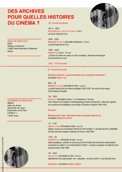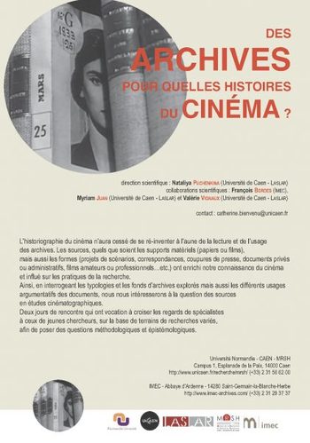 Journées d’études doctorales en études cinématographiques (UCN) organisée par le LASLAR (MRSH) en partenariat avec l'IMEC.